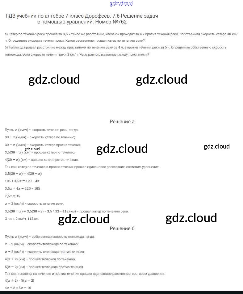 Ответ на задание 762 Учебник Алгебра  за 7 (седьмой) класс Дорофеев, Суворова, Бунимович Академический школьный учебник  2020