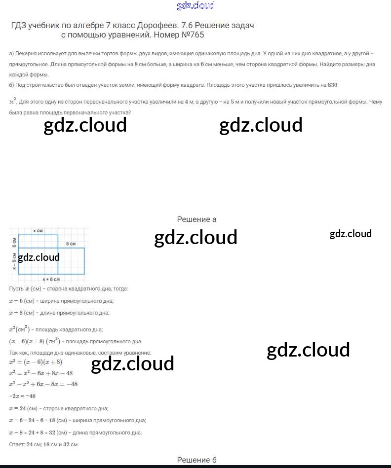 Ответ на задание 765 Учебник Алгебра за 7 (седьмой) класс Дорофеев, Суворова, Бунимович Академический школьный учебник 2020