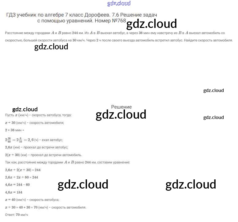 Ответ на задание 768 Учебник Алгебра  за 7 (седьмой) класс Дорофеев, Суворова, Бунимович Академический школьный учебник  2020