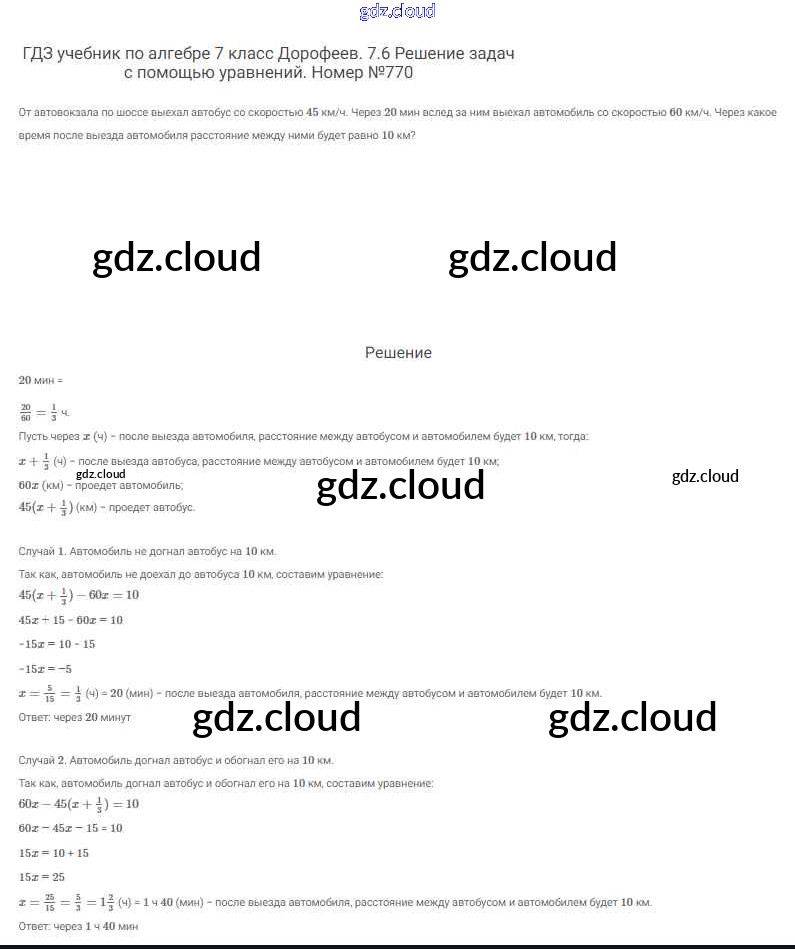 Ответ на задание 770 Учебник Алгебра за 7 (седьмой) класс Дорофеев, Суворова, Бунимович Академический школьный учебник 2020