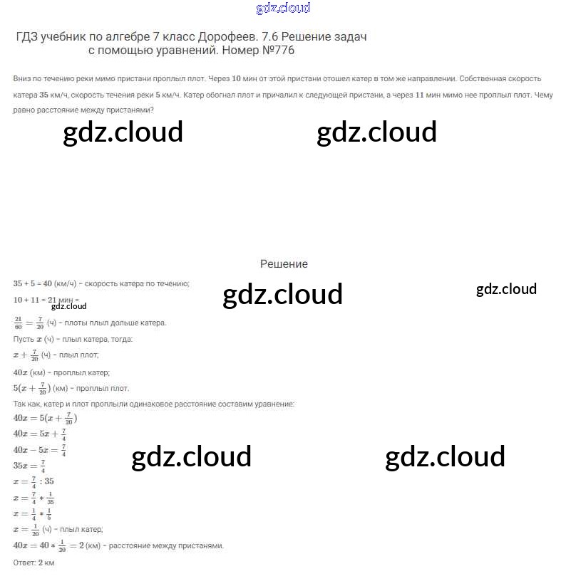 Ответ на задание 776 Учебник Алгебра за 7 (седьмой) класс Дорофеев, Суворова, Бунимович Академический школьный учебник 2020
