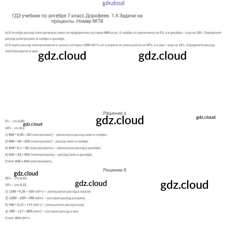 Ответ на задание 78 Учебник Алгебра  за 7 (седьмой) класс Дорофеев, Суворова, Бунимович Академический школьный учебник  2020