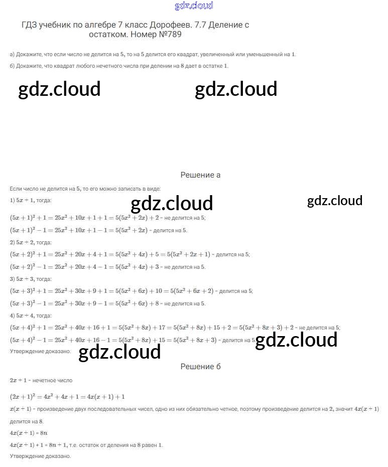 Ответ на задание 789 Учебник Алгебра  за 7 (седьмой) класс Дорофеев, Суворова, Бунимович Академический школьный учебник  2020