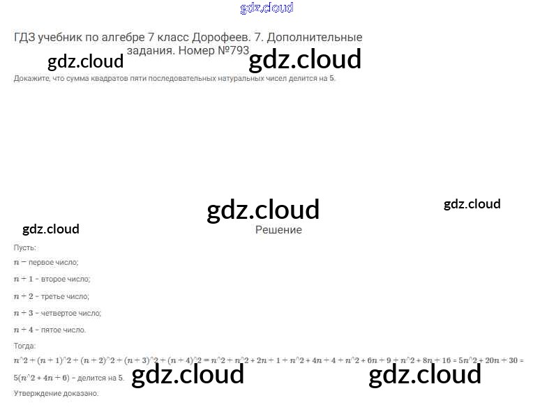 Ответ на задание 793 Учебник Алгебра за 7 (седьмой) класс Дорофеев, Суворова, Бунимович Академический школьный учебник 2020