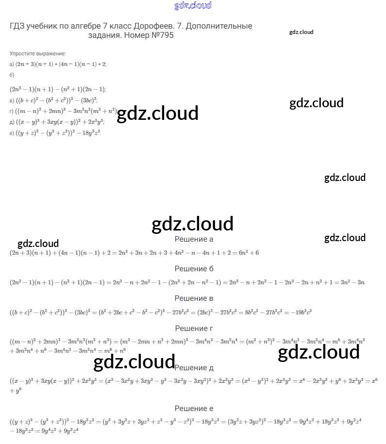 Ответ на задание 795 Учебник Алгебра за 7 (седьмой) класс Дорофеев, Суворова, Бунимович Академический школьный учебник 2020