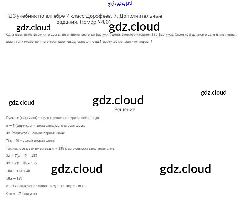 Ответ на задание 801 Учебник Алгебра  за 7 (седьмой) класс Дорофеев, Суворова, Бунимович Академический школьный учебник  2020