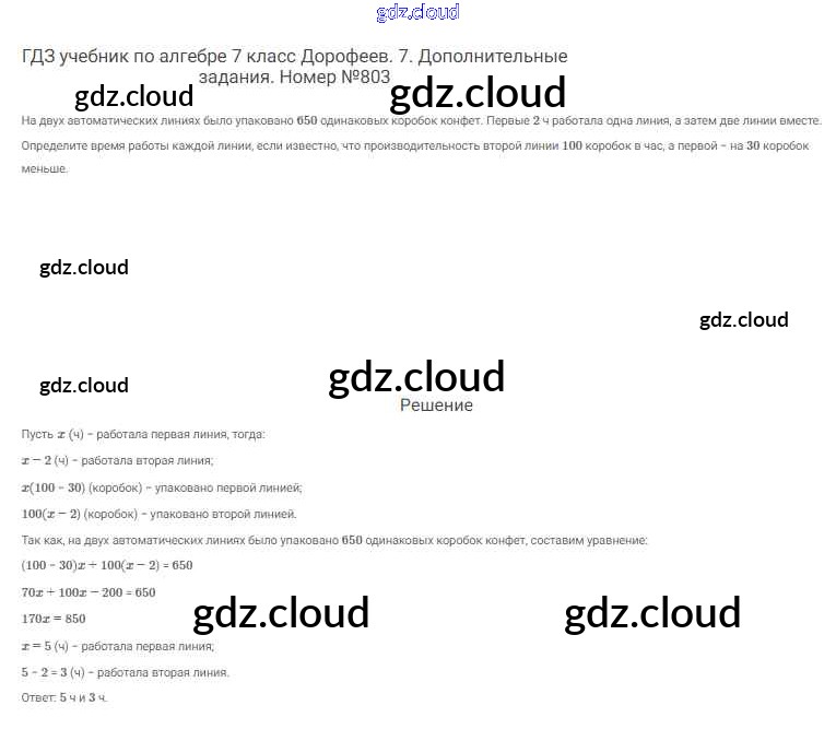 Ответ на задание 803 Учебник Алгебра за 7 (седьмой) класс Дорофеев, Суворова, Бунимович Академический школьный учебник 2020
