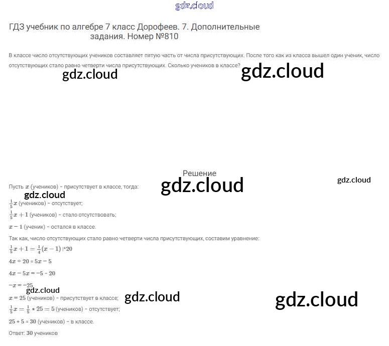 Ответ на задание 810 Учебник Алгебра за 7 (седьмой) класс Дорофеев, Суворова, Бунимович Академический школьный учебник 2020