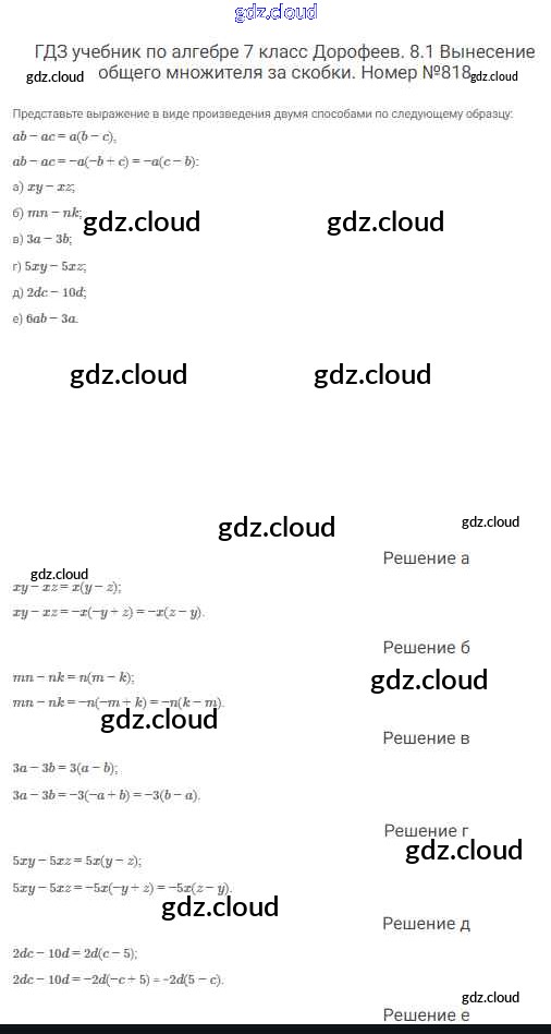 Ответ на задание 818 Учебник Алгебра  за 7 (седьмой) класс Дорофеев, Суворова, Бунимович Академический школьный учебник  2020
