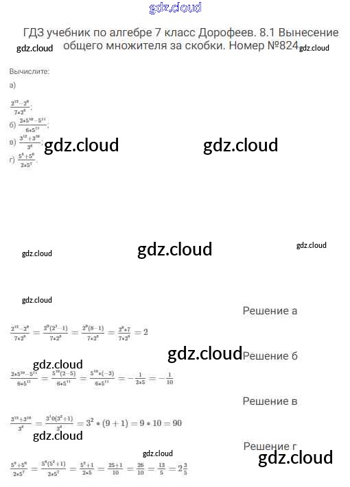 Ответ на задание 824 Учебник Алгебра  за 7 (седьмой) класс Дорофеев, Суворова, Бунимович Академический школьный учебник  2020