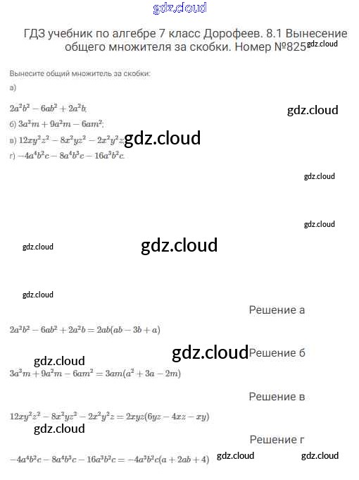 Ответ на задание 825 Учебник Алгебра  за 7 (седьмой) класс Дорофеев, Суворова, Бунимович Академический школьный учебник  2020