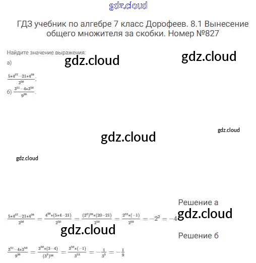Ответ на задание 827 Учебник Алгебра  за 7 (седьмой) класс Дорофеев, Суворова, Бунимович Академический школьный учебник  2020