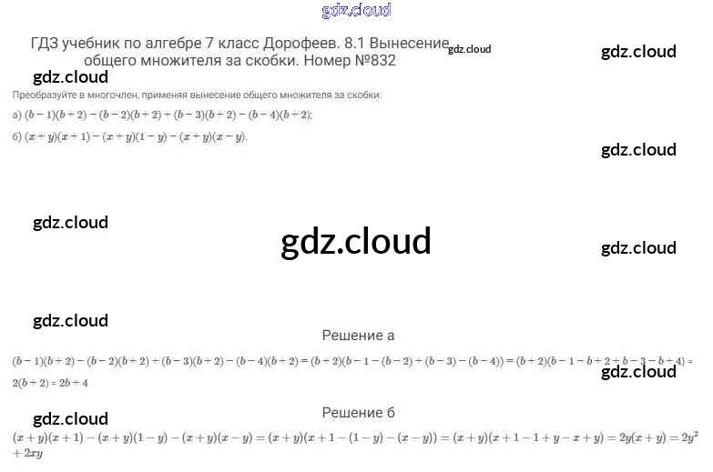 Ответ на задание 832 Учебник Алгебра  за 7 (седьмой) класс Дорофеев, Суворова, Бунимович Академический школьный учебник  2020