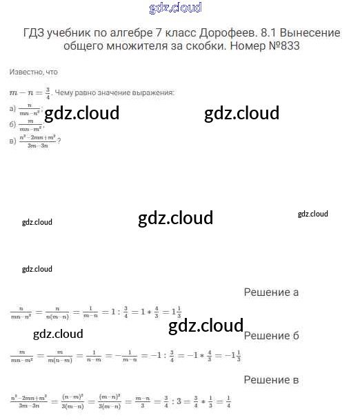 Ответ на задание 833 Учебник Алгебра  за 7 (седьмой) класс Дорофеев, Суворова, Бунимович Академический школьный учебник  2020
