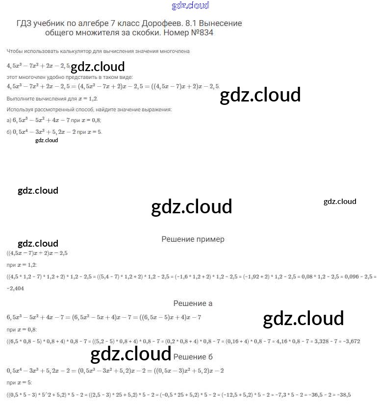 Ответ на задание 834 Учебник Алгебра  за 7 (седьмой) класс Дорофеев, Суворова, Бунимович Академический школьный учебник  2020