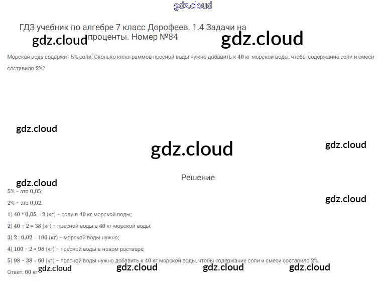 Ответ на задание 84 Учебник Алгебра  за 7 (седьмой) класс Дорофеев, Суворова, Бунимович Академический школьный учебник  2020