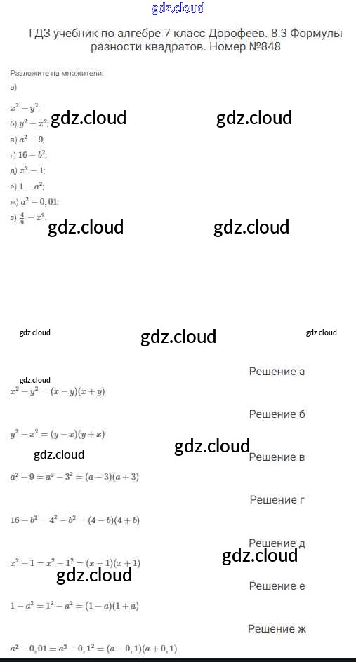 Ответ на задание 848 Учебник Алгебра  за 7 (седьмой) класс Дорофеев, Суворова, Бунимович Академический школьный учебник  2020