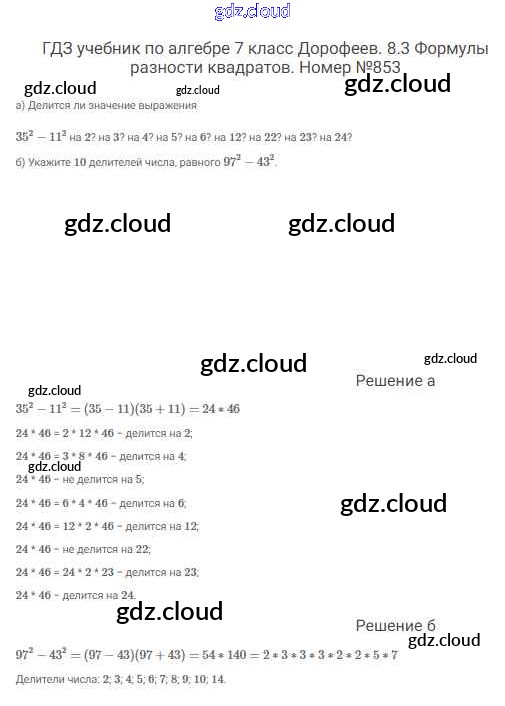 Ответ на задание 853 Учебник Алгебра  за 7 (седьмой) класс Дорофеев, Суворова, Бунимович Академический школьный учебник  2020