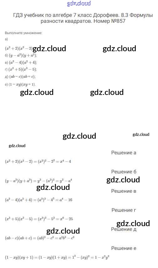 Ответ на задание 857 Учебник Алгебра  за 7 (седьмой) класс Дорофеев, Суворова, Бунимович Академический школьный учебник  2020