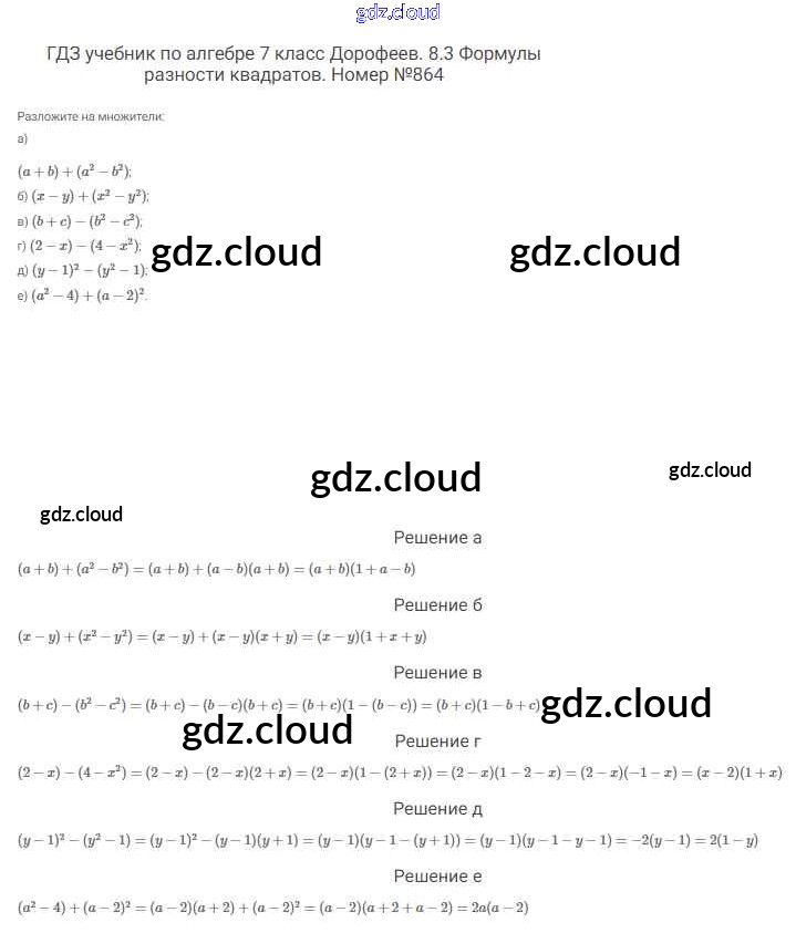 Ответ на задание 864 Учебник Алгебра  за 7 (седьмой) класс Дорофеев, Суворова, Бунимович Академический школьный учебник  2020