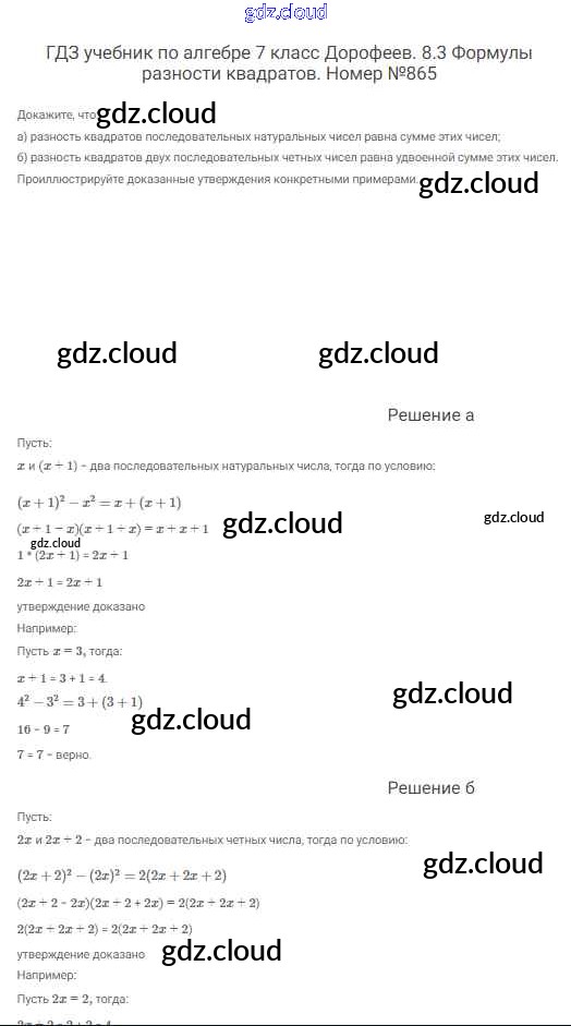 Ответ на задание 865 Учебник Алгебра  за 7 (седьмой) класс Дорофеев, Суворова, Бунимович Академический школьный учебник  2020
