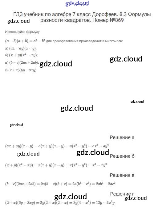 Ответ на задание 869 Учебник Алгебра  за 7 (седьмой) класс Дорофеев, Суворова, Бунимович Академический школьный учебник  2020