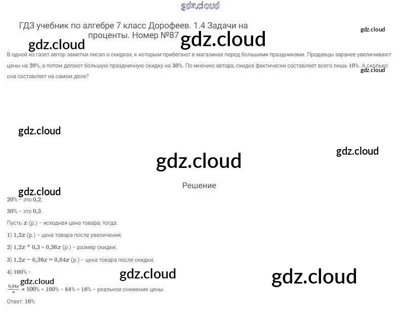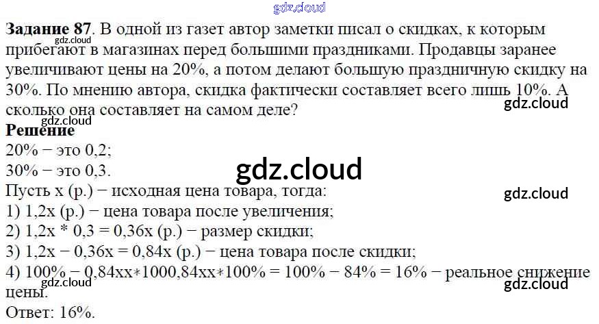 Ответ на задание 87 Учебник Алгебра  за 7 (седьмой) класс Дорофеев, Суворова, Бунимович Академический школьный учебник  2020