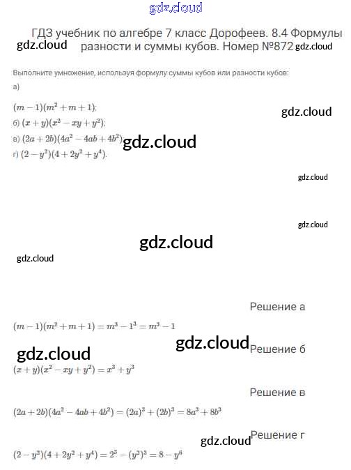 Ответ на задание 872 Учебник Алгебра  за 7 (седьмой) класс Дорофеев, Суворова, Бунимович Академический школьный учебник  2020