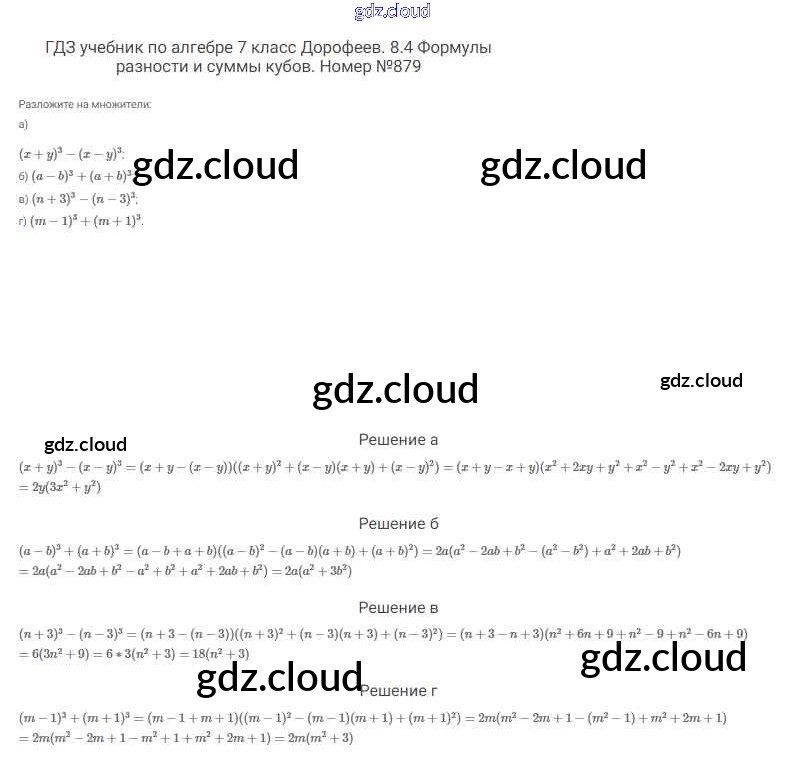 Ответ на задание 879 Учебник Алгебра  за 7 (седьмой) класс Дорофеев, Суворова, Бунимович Академический школьный учебник  2020