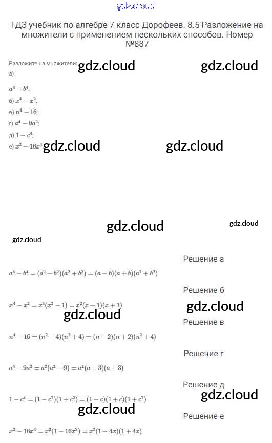 Ответ на задание 887 Учебник Алгебра  за 7 (седьмой) класс Дорофеев, Суворова, Бунимович Академический школьный учебник  2020