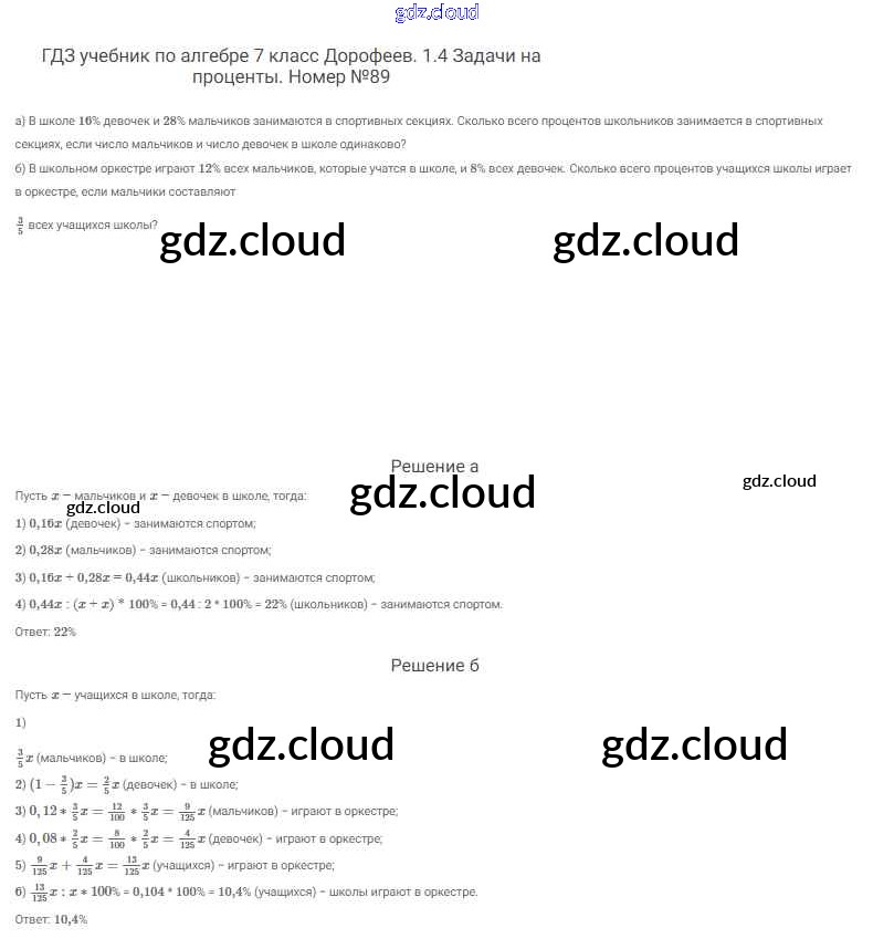 Ответ на задание 89 Учебник Алгебра  за 7 (седьмой) класс Дорофеев, Суворова, Бунимович Академический школьный учебник  2020