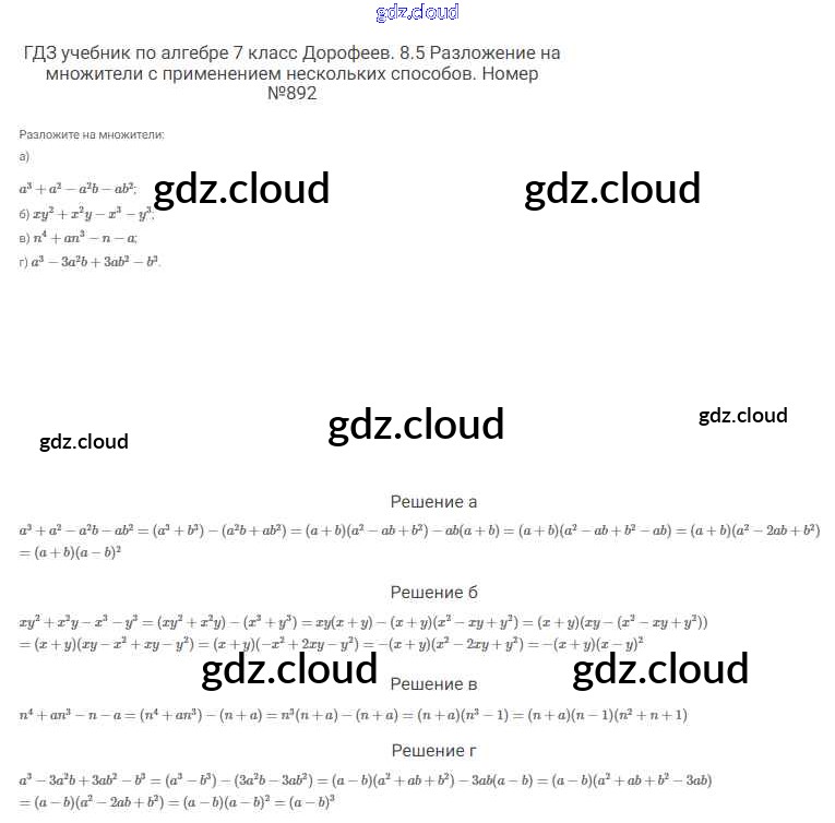 Ответ на задание 892 Учебник Алгебра  за 7 (седьмой) класс Дорофеев, Суворова, Бунимович Академический школьный учебник  2020
