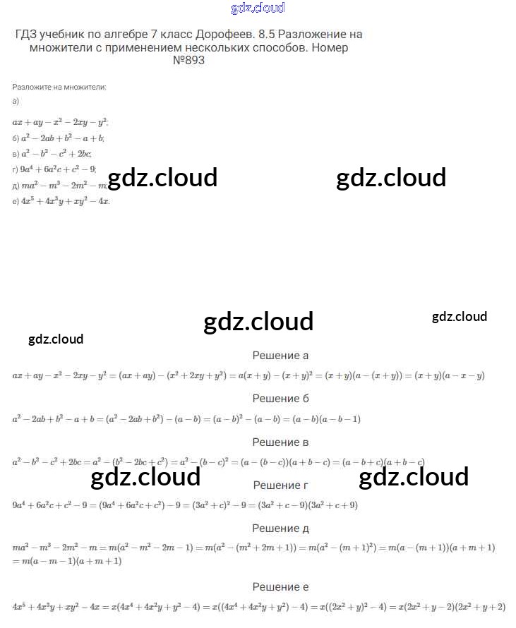 Ответ на задание 893 Учебник Алгебра  за 7 (седьмой) класс Дорофеев, Суворова, Бунимович Академический школьный учебник  2020