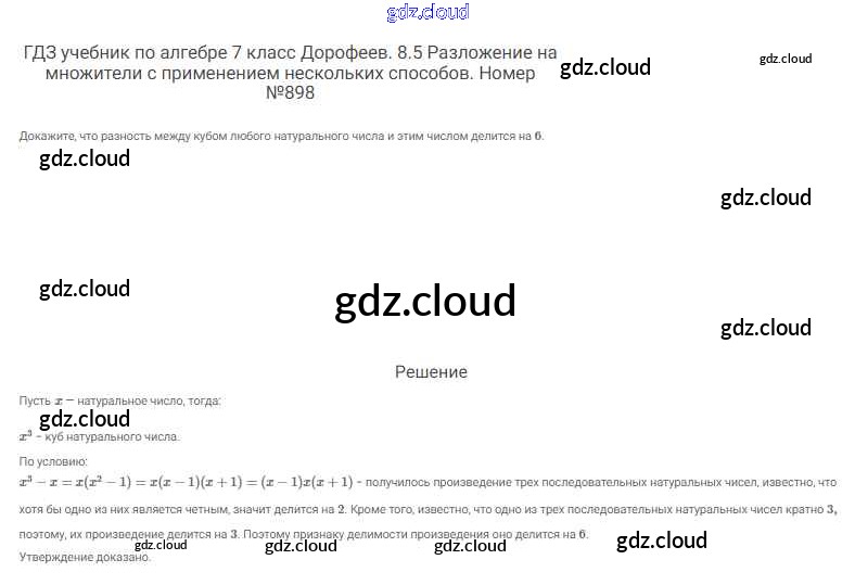 Ответ на задание 898 Учебник Алгебра за 7 (седьмой) класс Дорофеев, Суворова, Бунимович Академический школьный учебник 2020