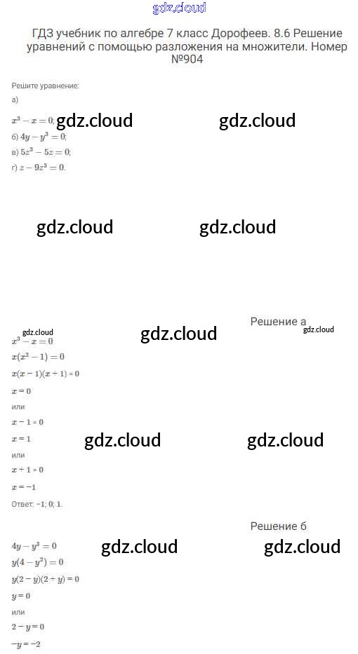 Ответ на задание 904 Учебник Алгебра  за 7 (седьмой) класс Дорофеев, Суворова, Бунимович Академический школьный учебник  2020