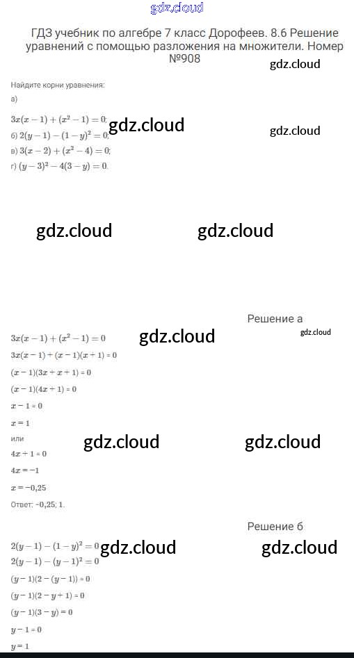 Ответ на задание 908 Учебник Алгебра за 7 (седьмой) класс Дорофеев, Суворова, Бунимович Академический школьный учебник 2020