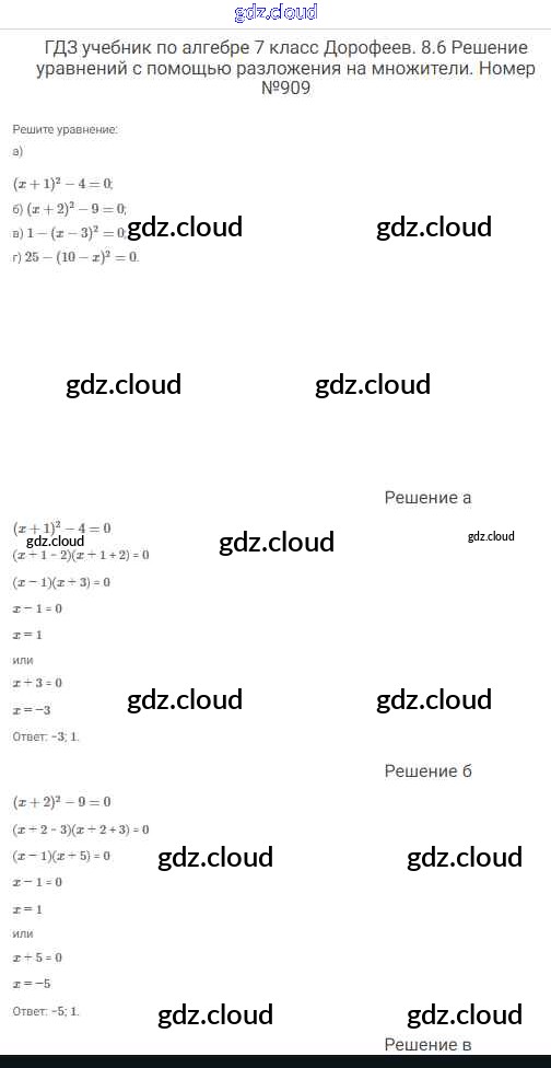 Ответ на задание 909 Учебник Алгебра за 7 (седьмой) класс Дорофеев, Суворова, Бунимович Академический школьный учебник 2020
