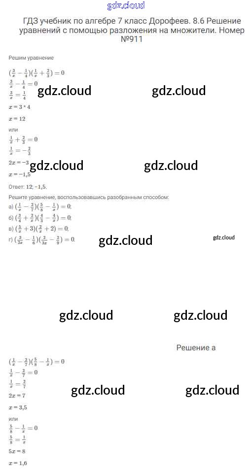 Ответ на задание 911 Учебник Алгебра  за 7 (седьмой) класс Дорофеев, Суворова, Бунимович Академический школьный учебник  2020