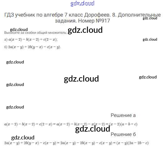 Ответ на задание 917 Учебник Алгебра за 7 (седьмой) класс Дорофеев, Суворова, Бунимович Академический школьный учебник 2020