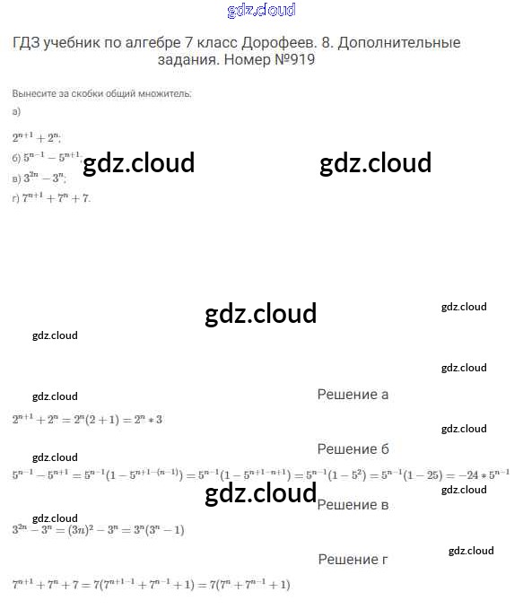 Ответ на задание 919 Учебник Алгебра  за 7 (седьмой) класс Дорофеев, Суворова, Бунимович Академический школьный учебник  2020