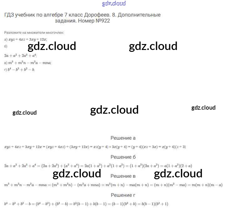 Ответ на задание 922 Учебник Алгебра  за 7 (седьмой) класс Дорофеев, Суворова, Бунимович Академический школьный учебник  2020