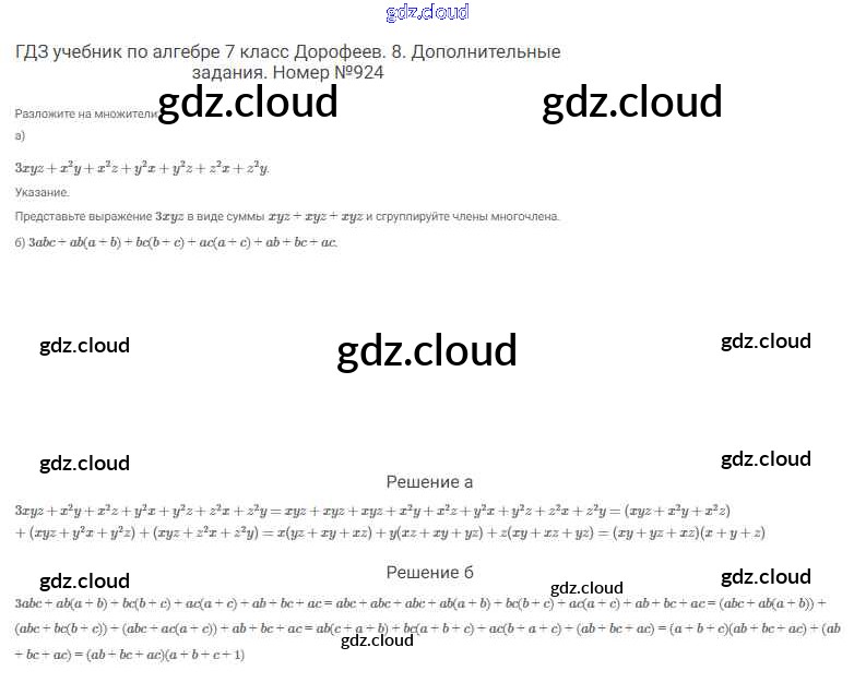 Ответ на задание 924 Учебник Алгебра  за 7 (седьмой) класс Дорофеев, Суворова, Бунимович Академический школьный учебник  2020