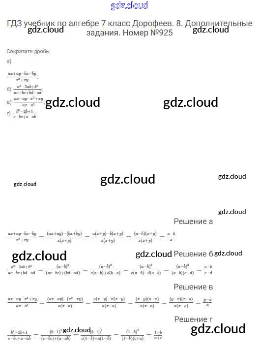 Ответ на задание 925 Учебник Алгебра  за 7 (седьмой) класс Дорофеев, Суворова, Бунимович Академический школьный учебник  2020