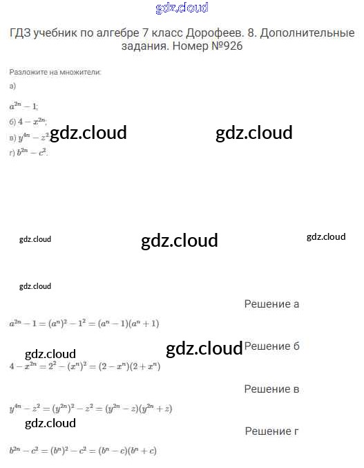 Ответ на задание 926 Учебник Алгебра  за 7 (седьмой) класс Дорофеев, Суворова, Бунимович Академический школьный учебник  2020