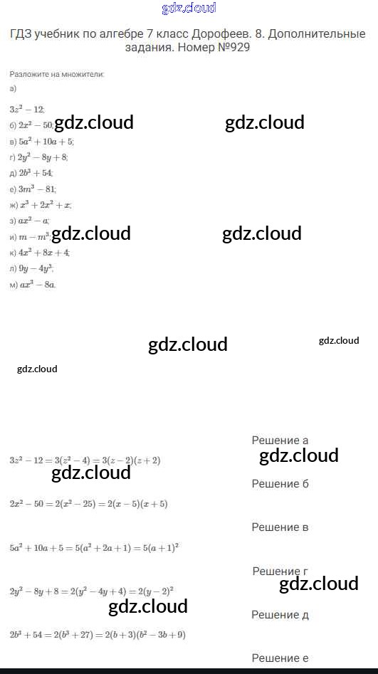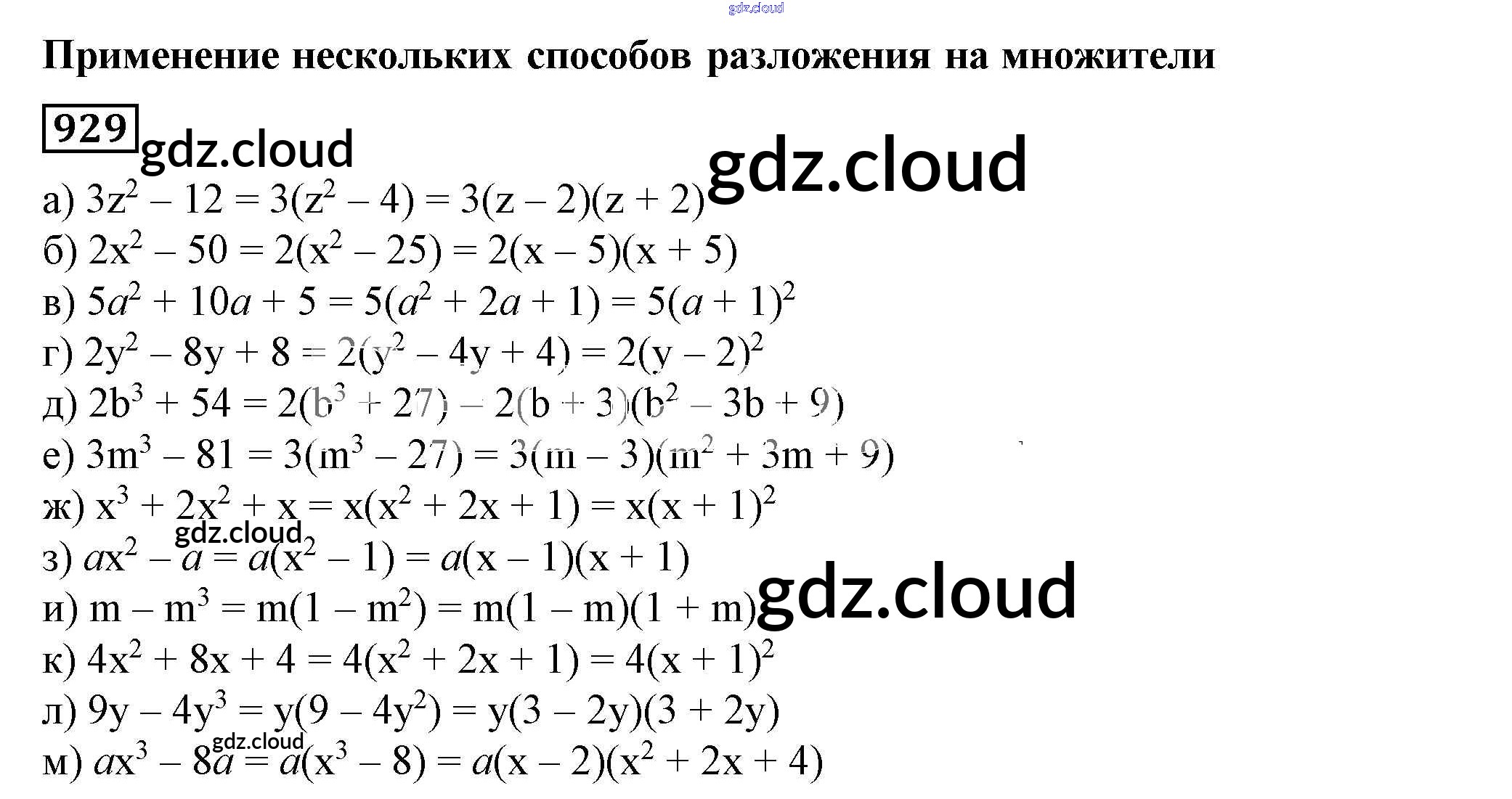 Ответ на задание 929 Учебник Алгебра  за 7 (седьмой) класс Дорофеев, Суворова, Бунимович Академический школьный учебник  2020