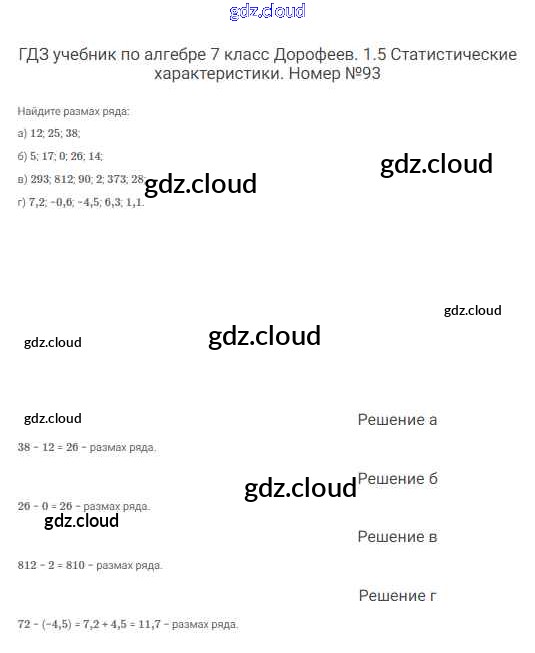 Ответ на задание 93 Учебник Алгебра  за 7 (седьмой) класс Дорофеев, Суворова, Бунимович Академический школьный учебник  2020