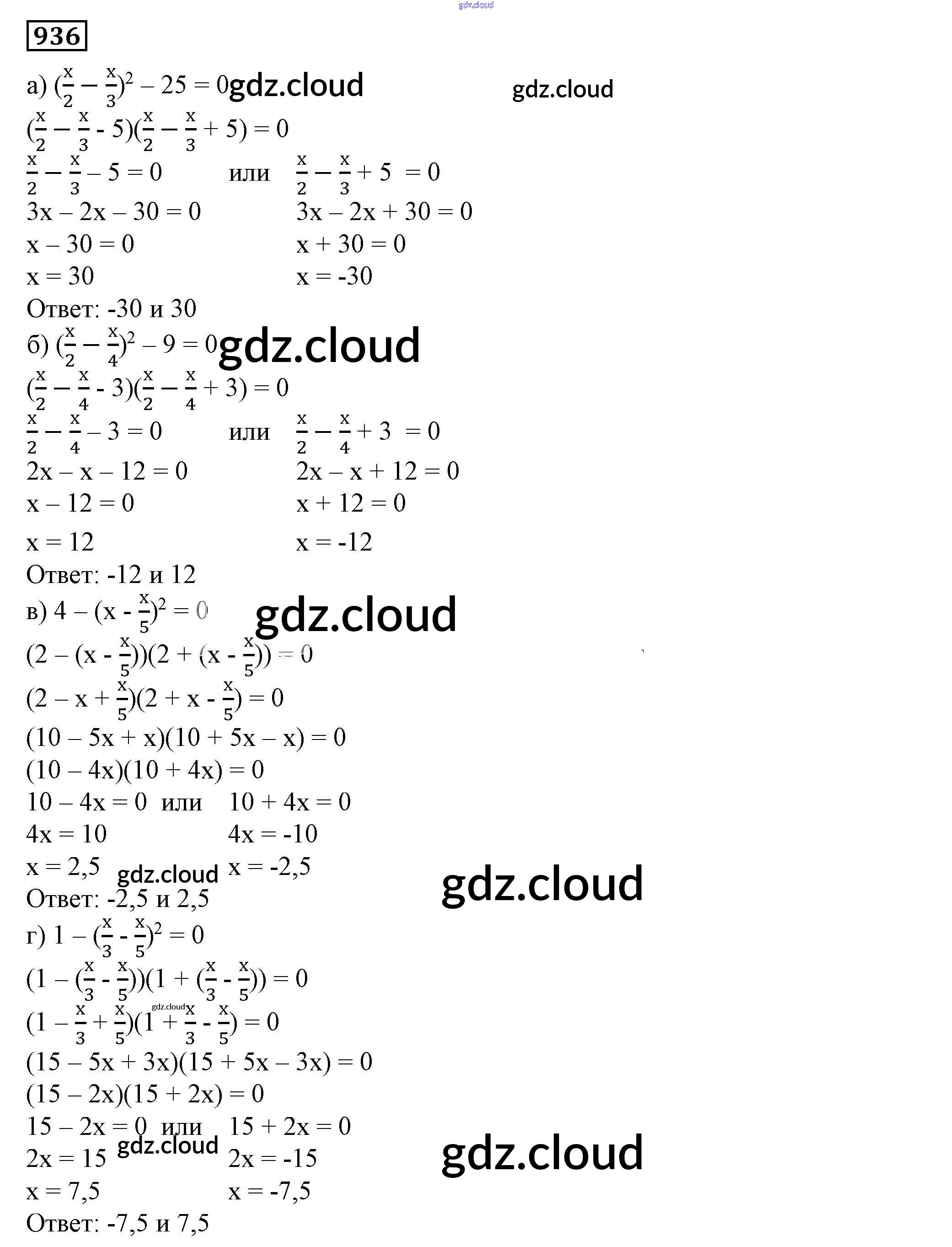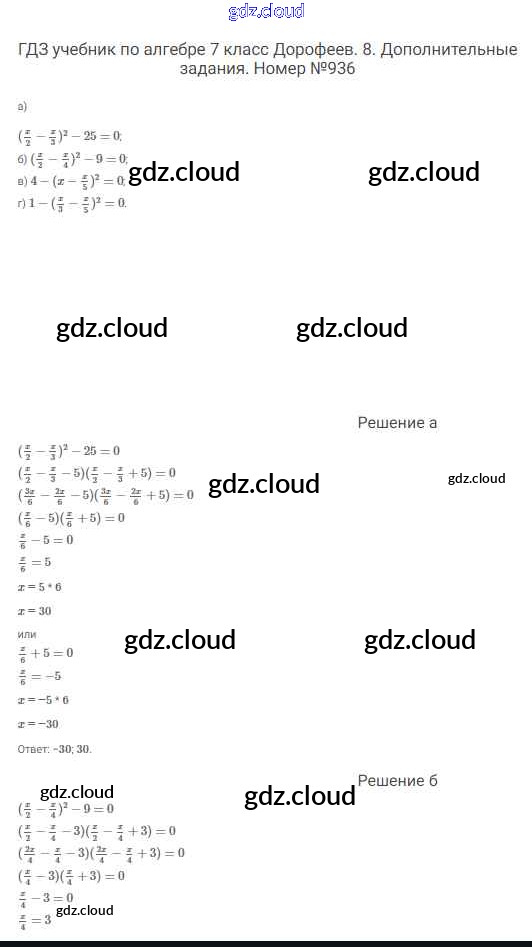 Ответ на задание 936 Учебник Алгебра  за 7 (седьмой) класс Дорофеев, Суворова, Бунимович Академический школьный учебник  2020