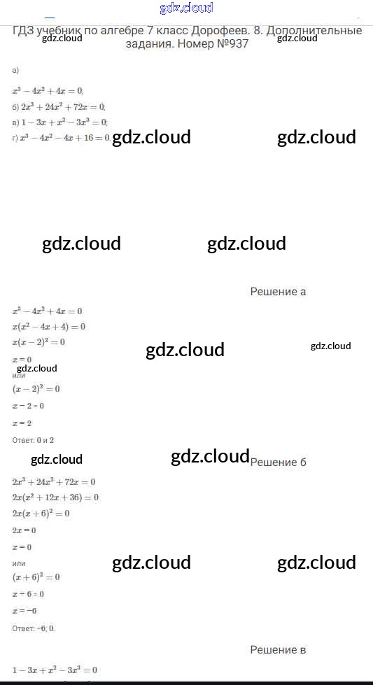 Ответ на задание 937 Учебник Алгебра  за 7 (седьмой) класс Дорофеев, Суворова, Бунимович Академический школьный учебник  2020