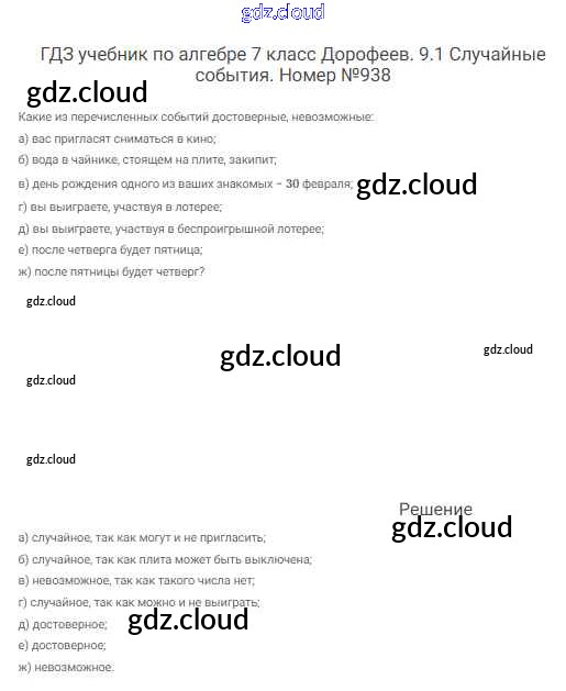 Ответ на задание 938 Учебник Алгебра  за 7 (седьмой) класс Дорофеев, Суворова, Бунимович Академический школьный учебник  2020