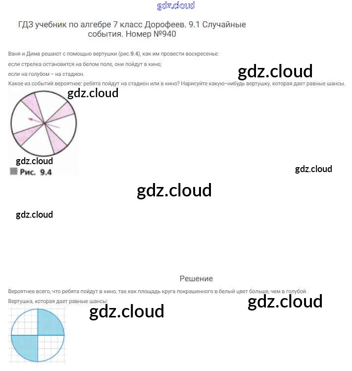 Ответ на задание 940 Учебник Алгебра  за 7 (седьмой) класс Дорофеев, Суворова, Бунимович Академический школьный учебник  2020